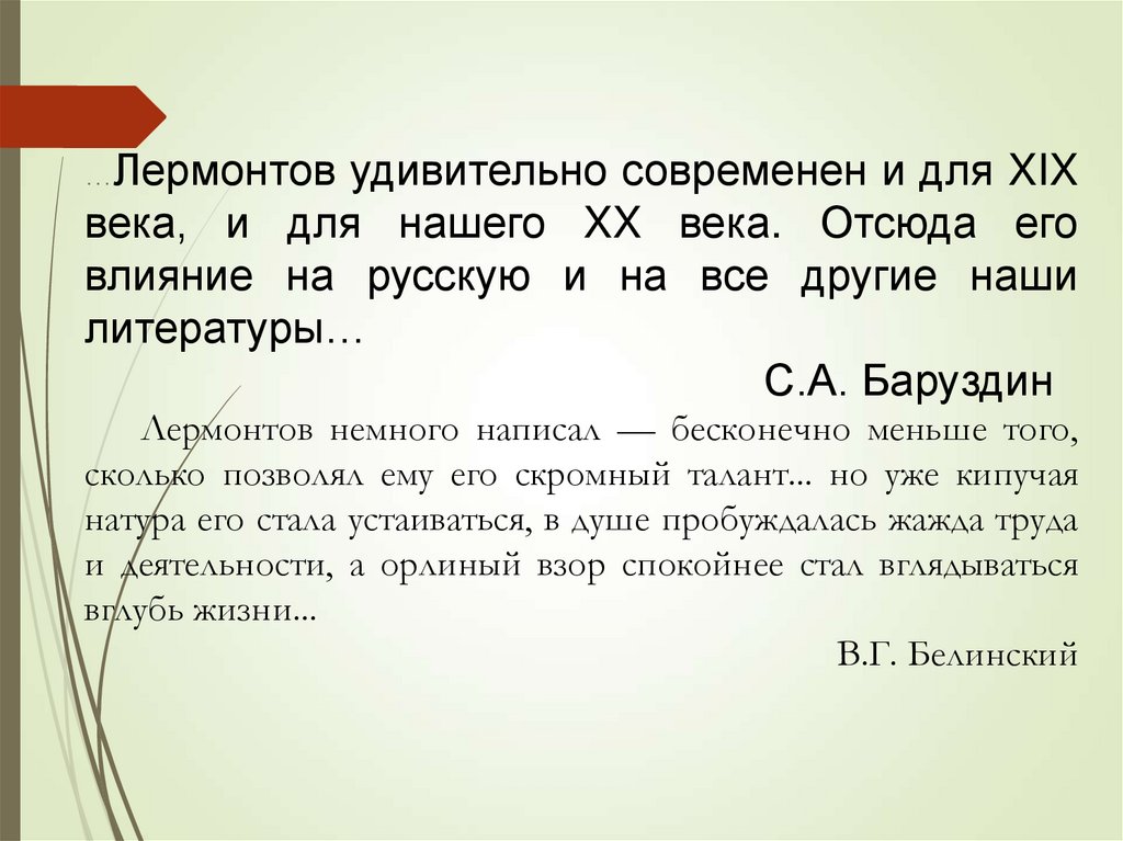 …Лермонтов удивительно современен и для XIXвека, и для нашего XX века. Отсюда его