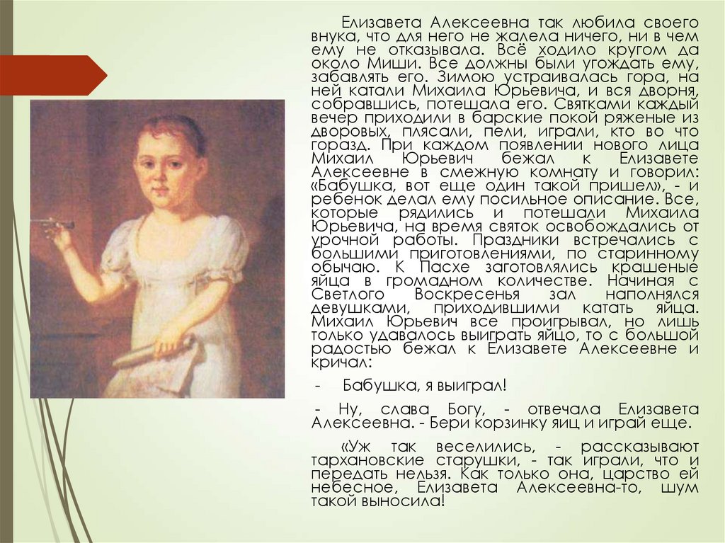 Бабушка М. Ю. Лермонтова Елизавета Алексеевна АрсеньеваВскоре