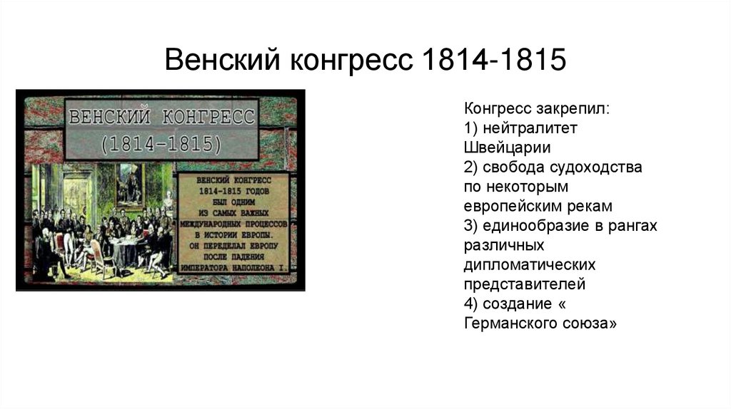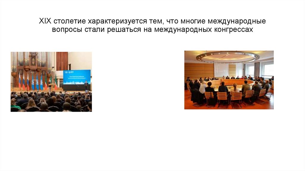 XIX столетие характеризуется тем, что многие международныевопросы стали решаться на международных конгрессах