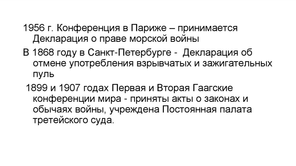 1956 г. Конференция в Париже – принимаетсяДекларация о праве морской войны