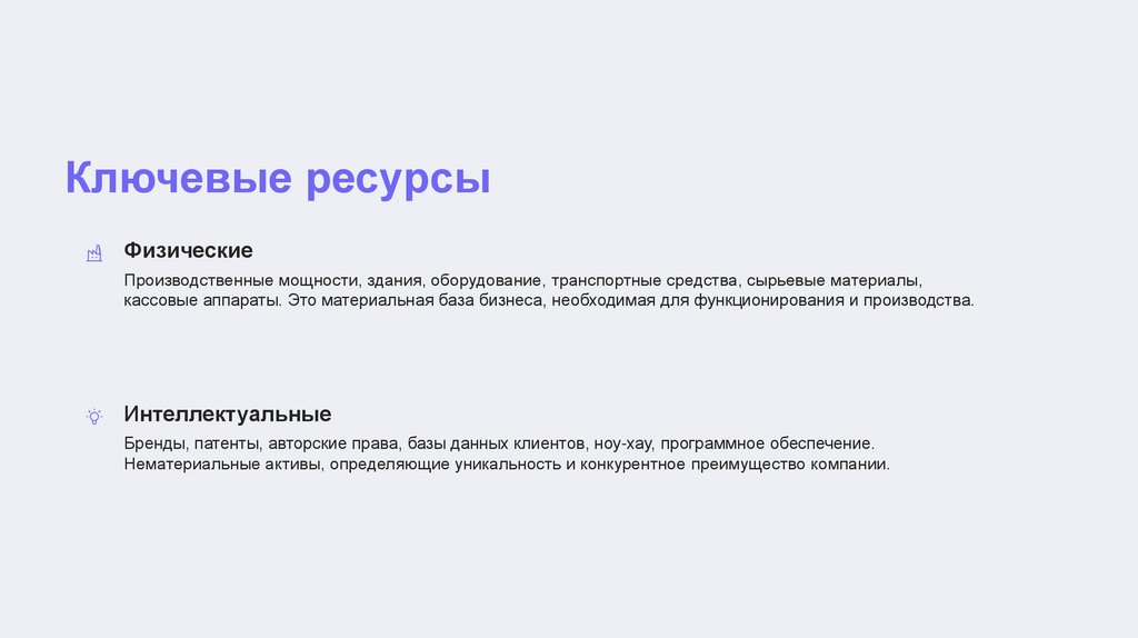 Бренды, патенты, авторские права, базы данных клиентов, ноу-хау, программное обеспечение.