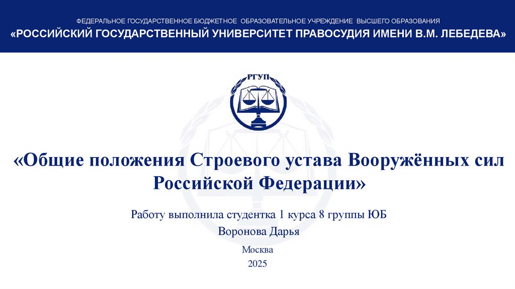 РОССИЙСКОЙ ГОСУДАРСТВЕННЫЙУНИВЕРСИТЕТ ПРАВОСУДИЯ ИМЕНИ В. М. ЛЕБЕДЕВА