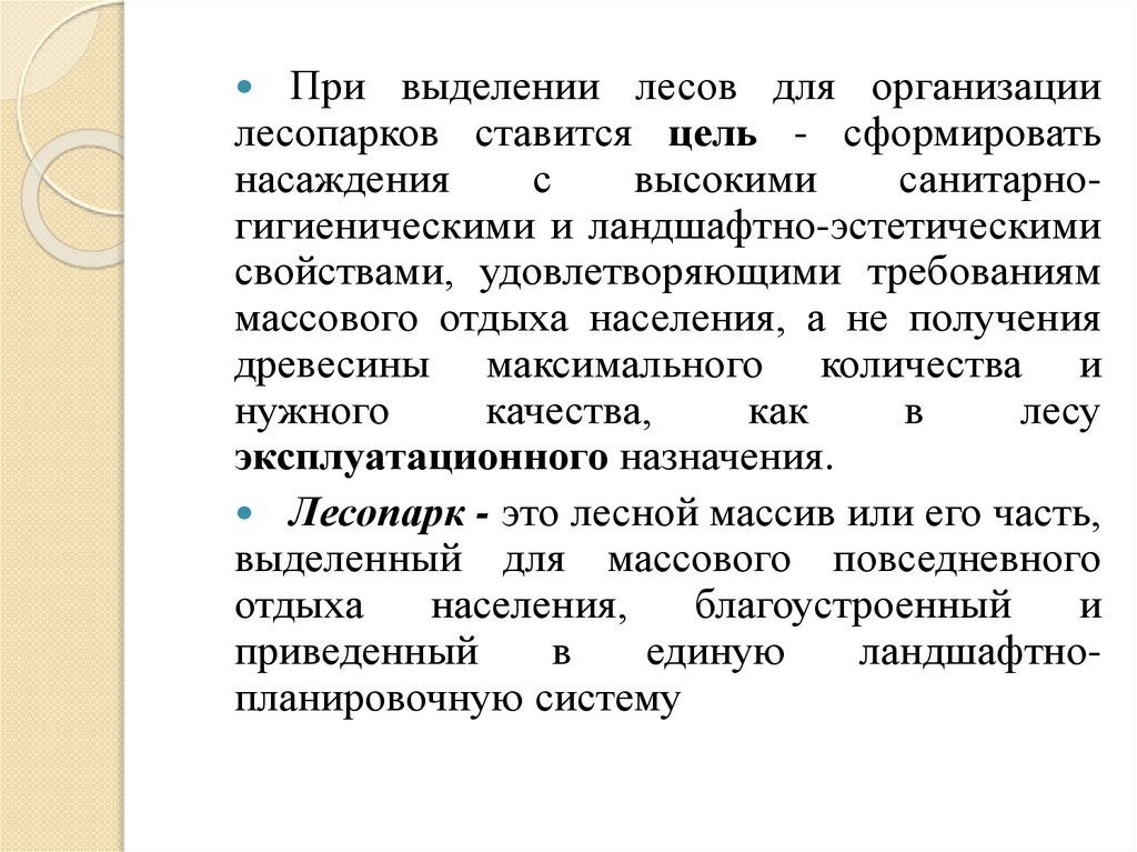 При выделении лесов для организациилесопарков ставится цель - сформировать