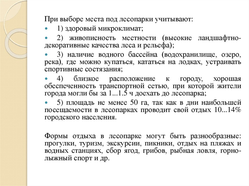При выборе места под лесопарки учитывают:1) здоровый микроклимат;