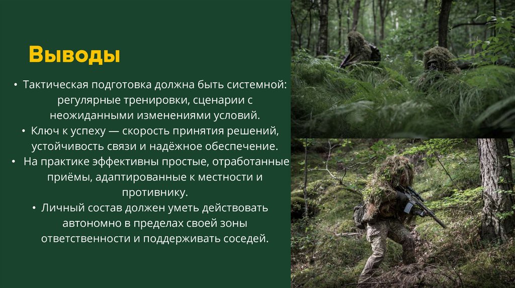 организацию действий на уровне отделения, взвода, роты, батальона.