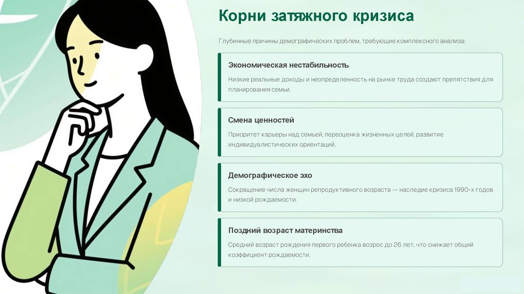 Корни затяжного кризисаГлубинные причины демографических проблем, требующие комплексного анализа: