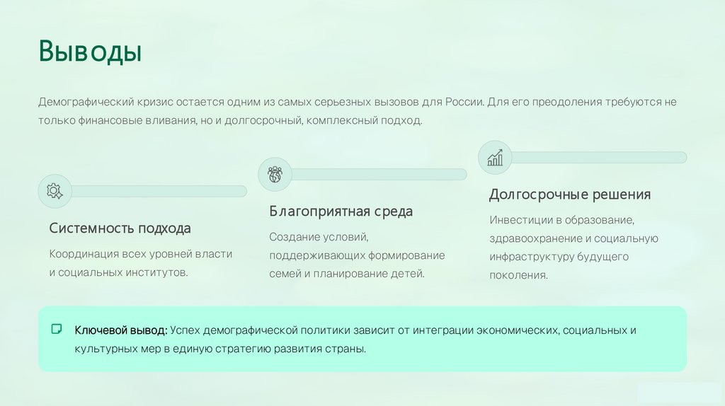 Ключевой вывод: Успех демографической политики зависит от интеграции экономических, социальных и
