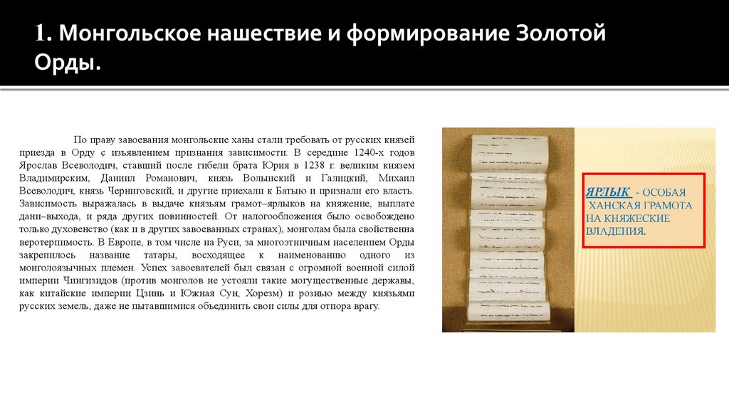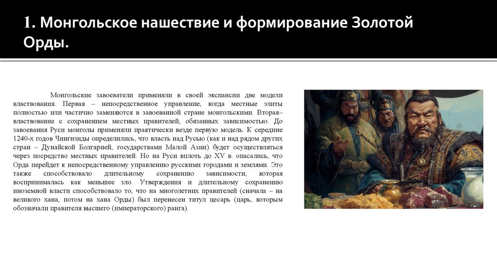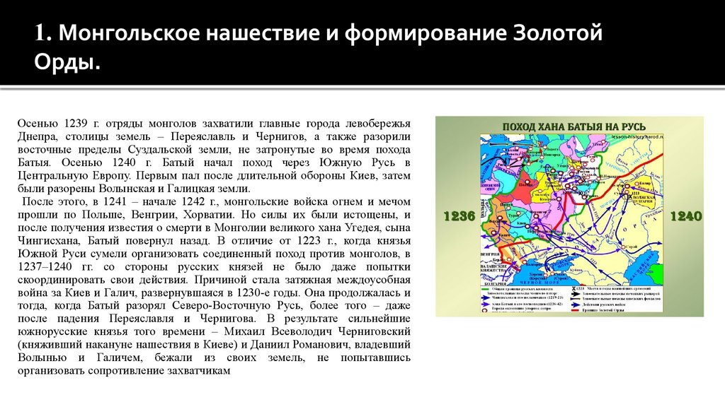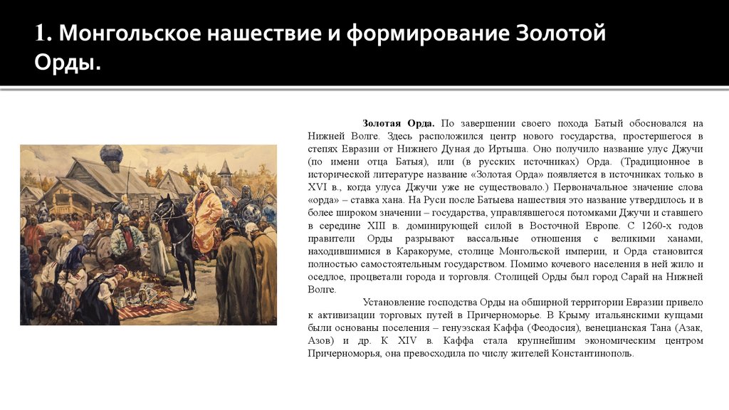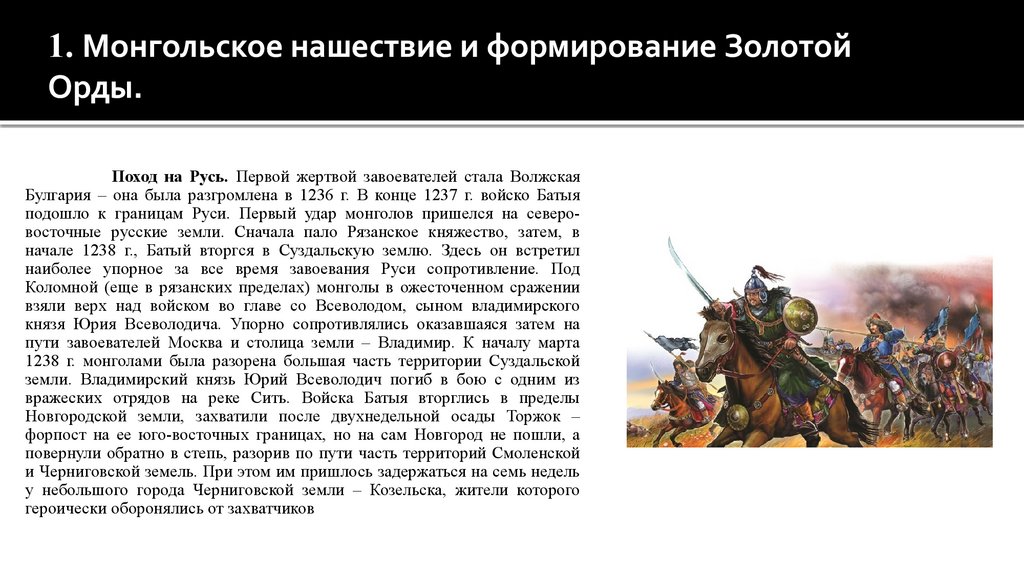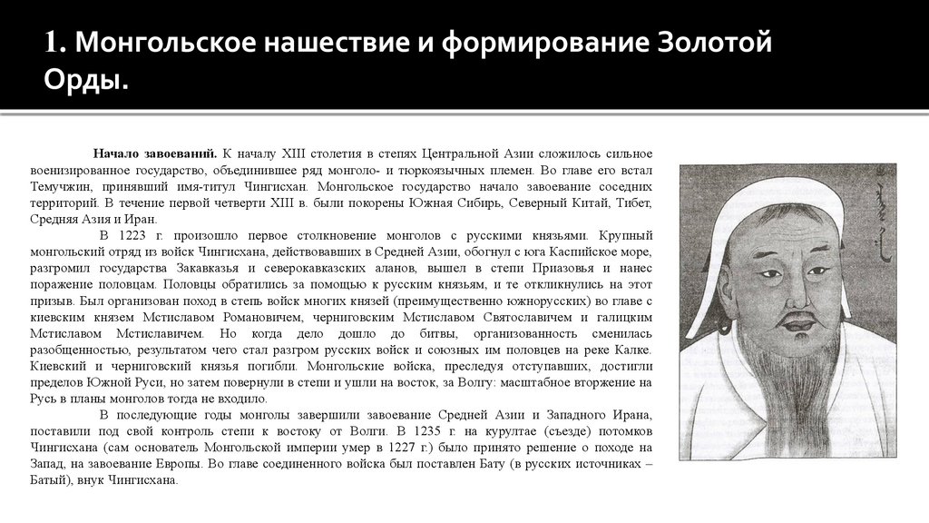 1. Монгольское нашествие и формирование ЗолотойОрды