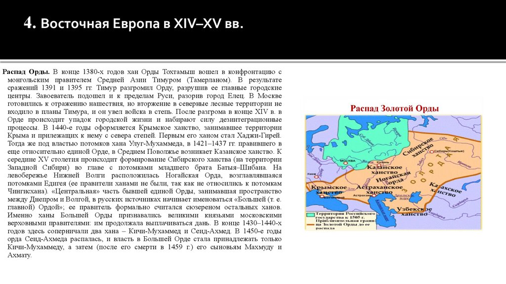 в середине XIII в. доминирующей силой в Восточной Европе. С 1260-х годов