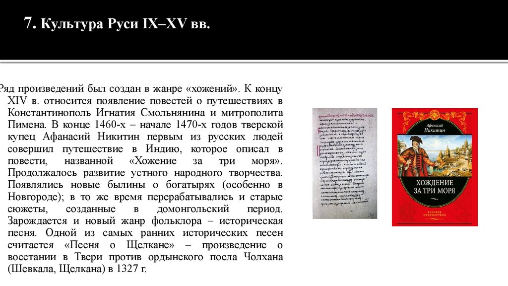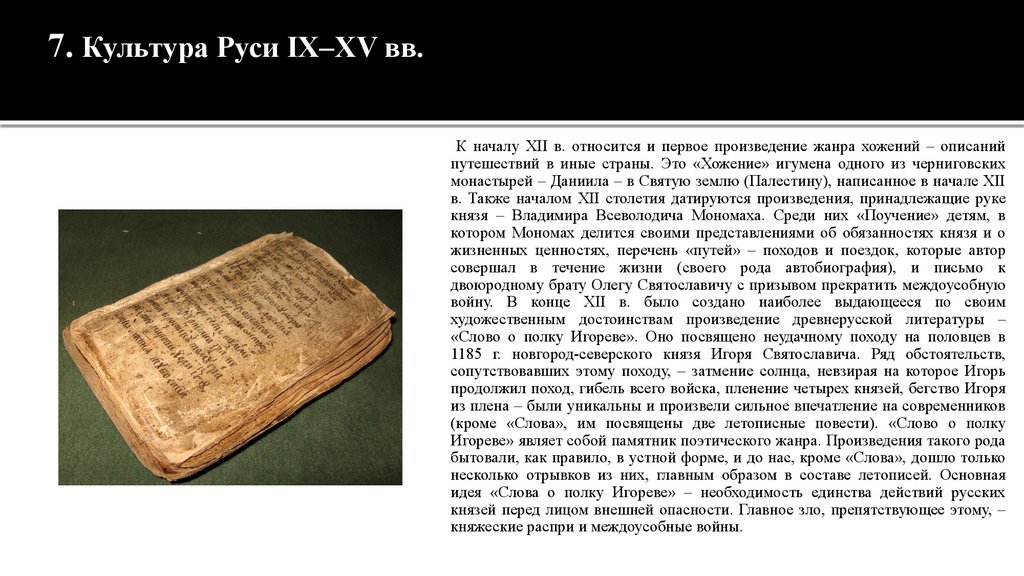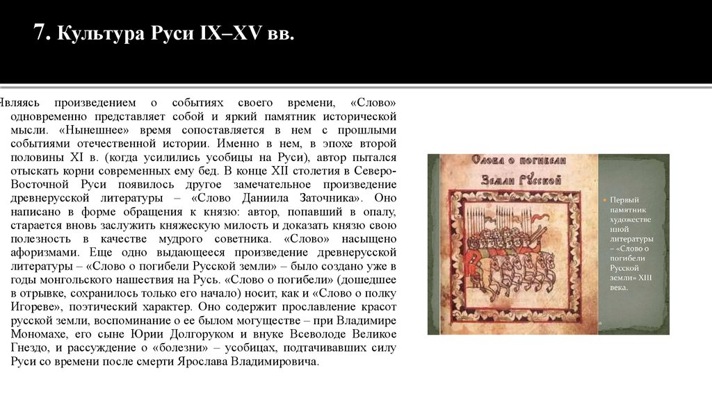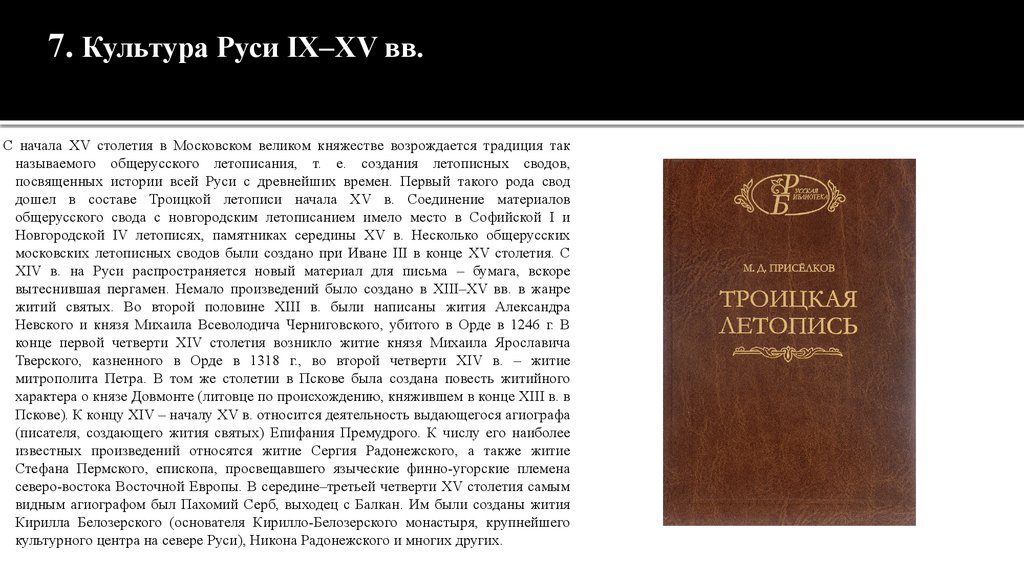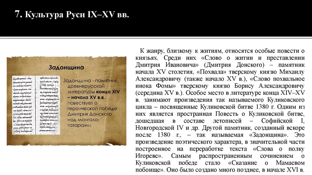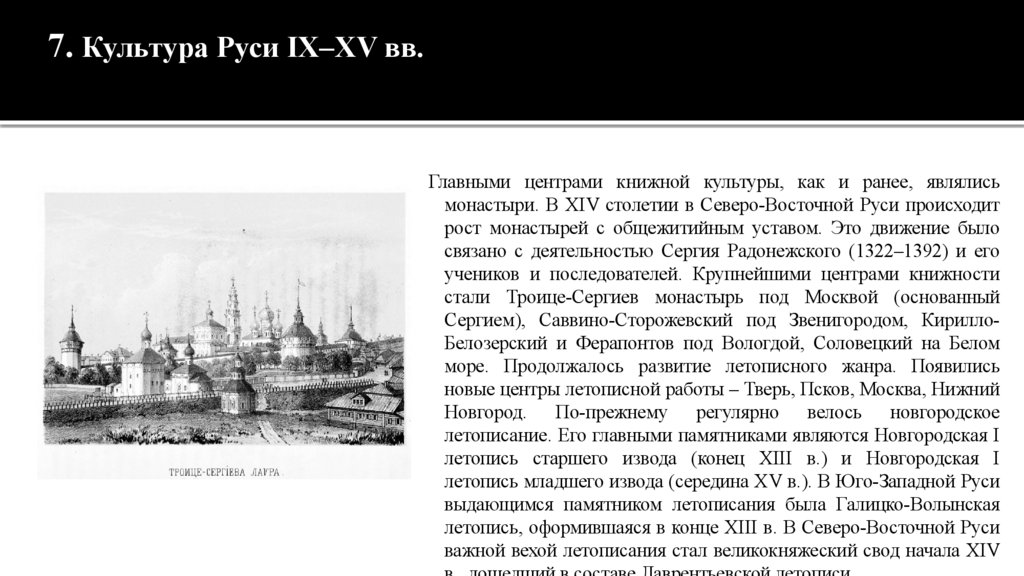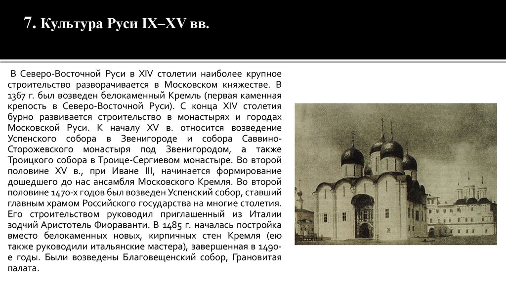 7. Культура Руси IX–XV вв.В Северо-Восточной Руси в XIV столетии наиболее крупное