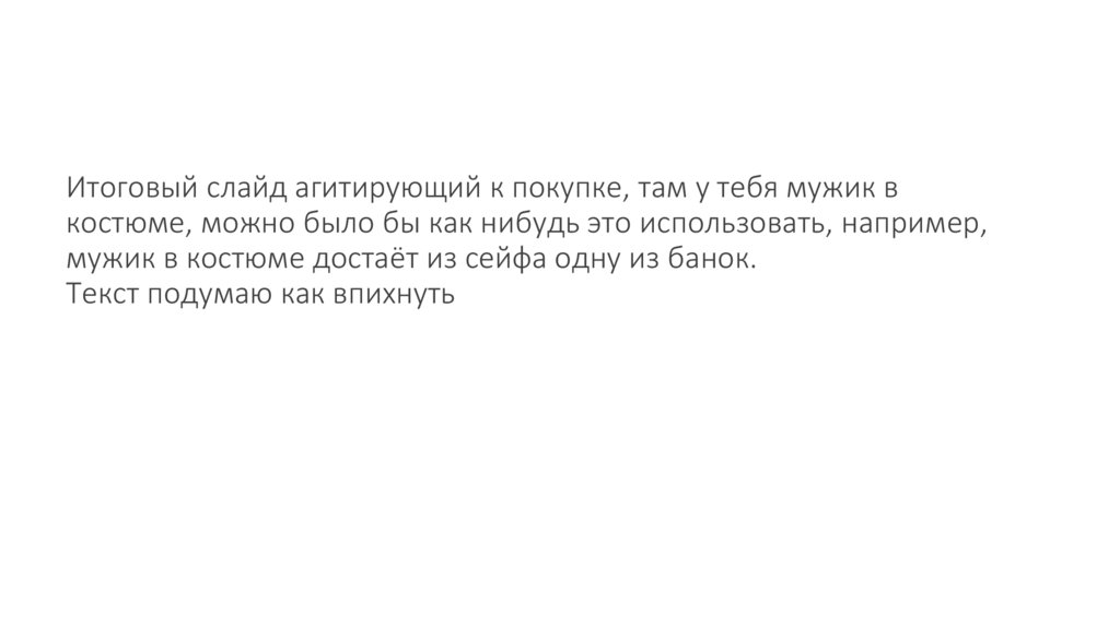 Итоговый слайд агитирующий к покупке, там у тебя мужик в
