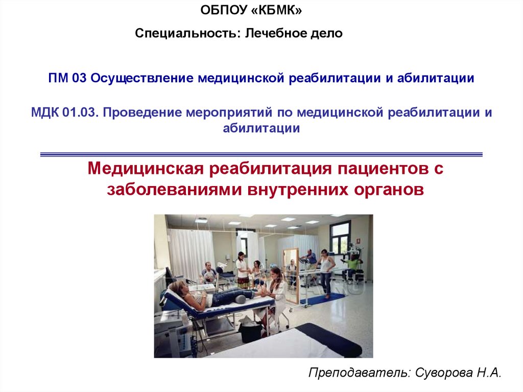 МДК 01.03. Проведение мероприятий по медицинской реабилитации и