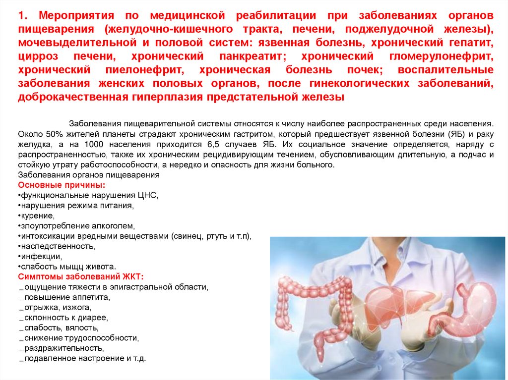 1. Мероприятия по медицинской реабилитации при заболеваниях органовпищеварения (желудочно-кишечного тракта, печени, поджелудочной железы),