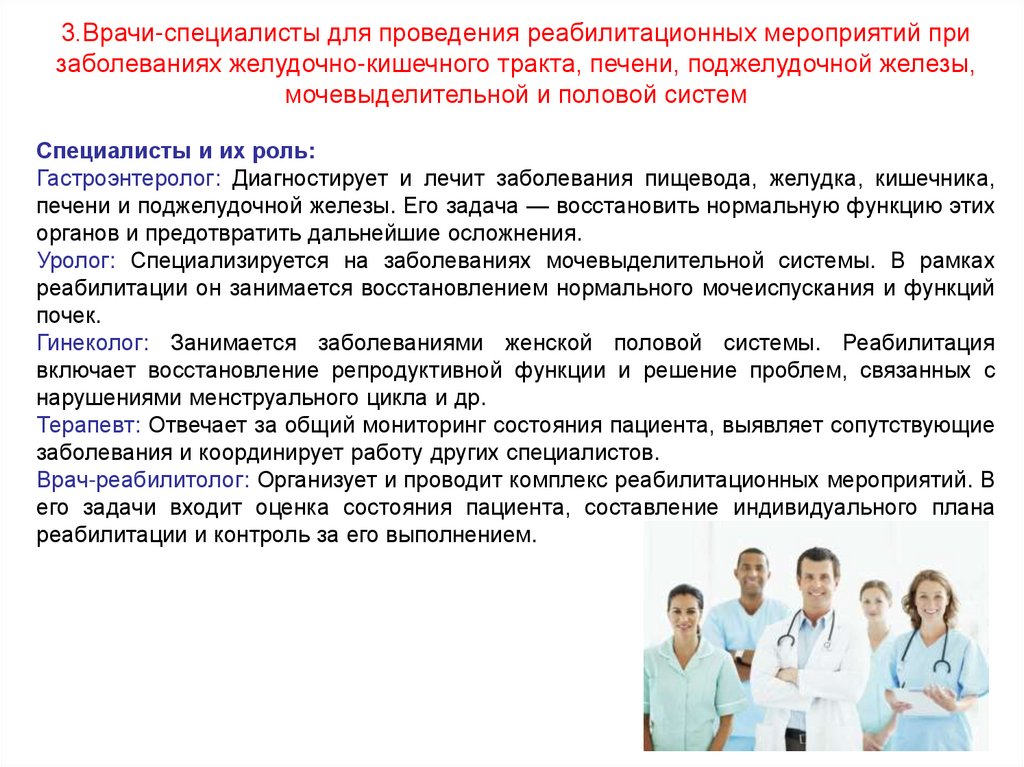 3.Врачи-специалисты для проведения реабилитационных мероприятий призаболеваниях желудочно-кишечного тракта, печени, поджелудочной железы,
