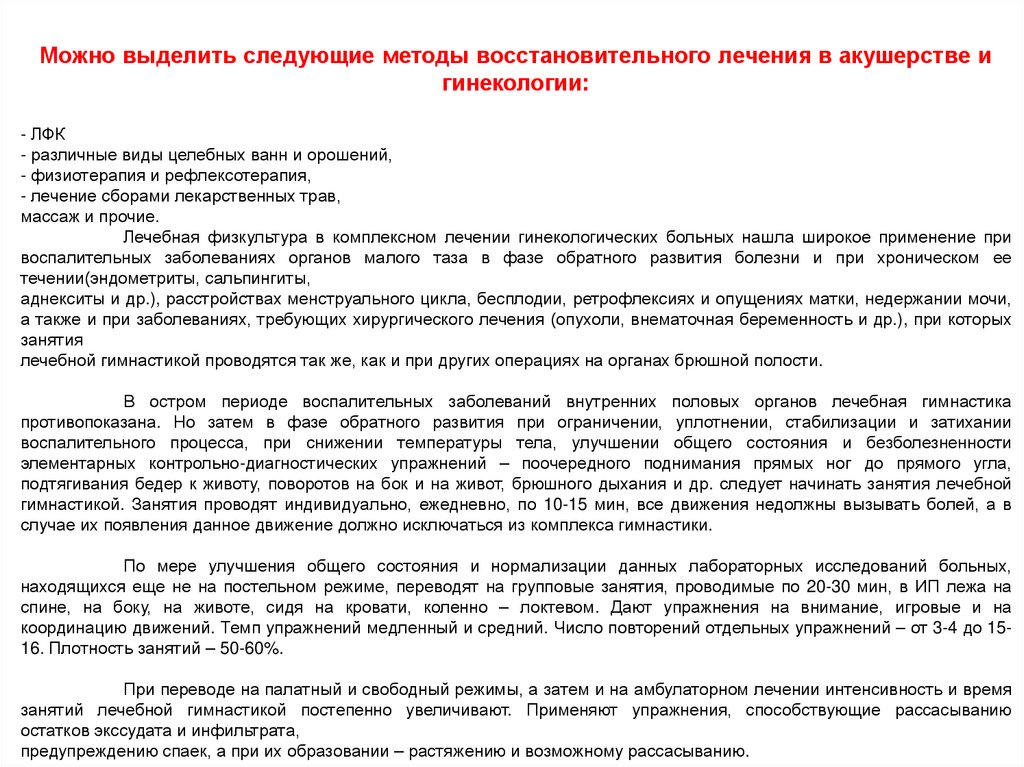 В остром периоде воспалительных заболеваний внутренних половых органов лечебная гимнастика