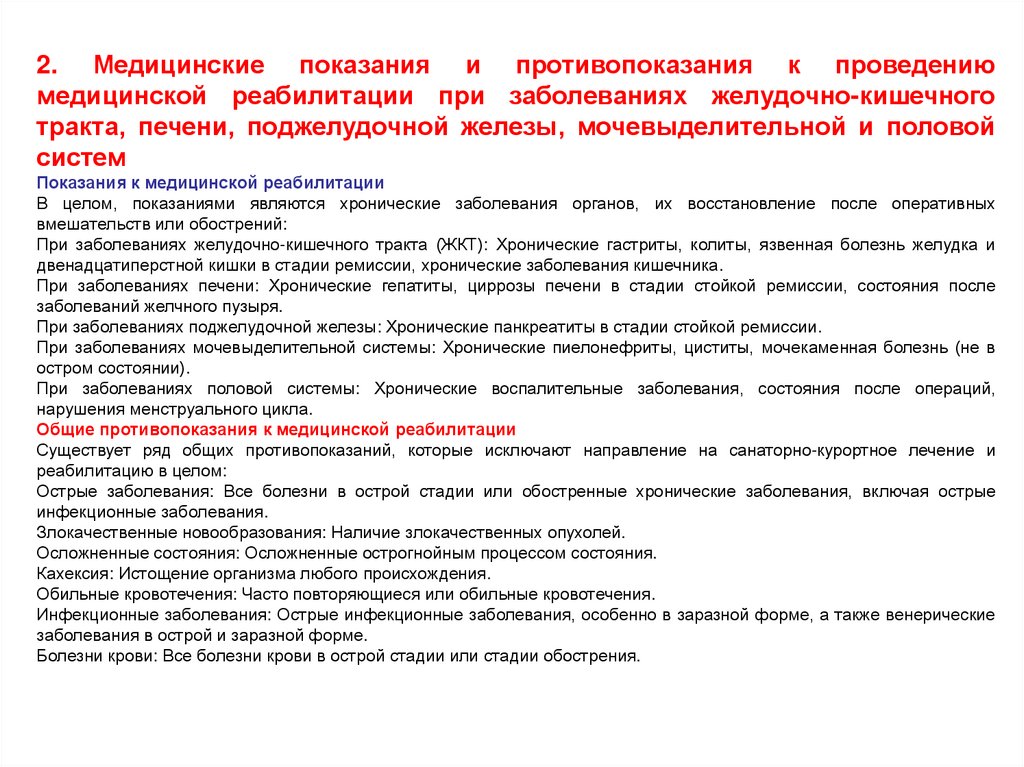 2. Медицинские показания и противопоказания к проведениюмедицинской реабилитации при заболеваниях желудочно-кишечного