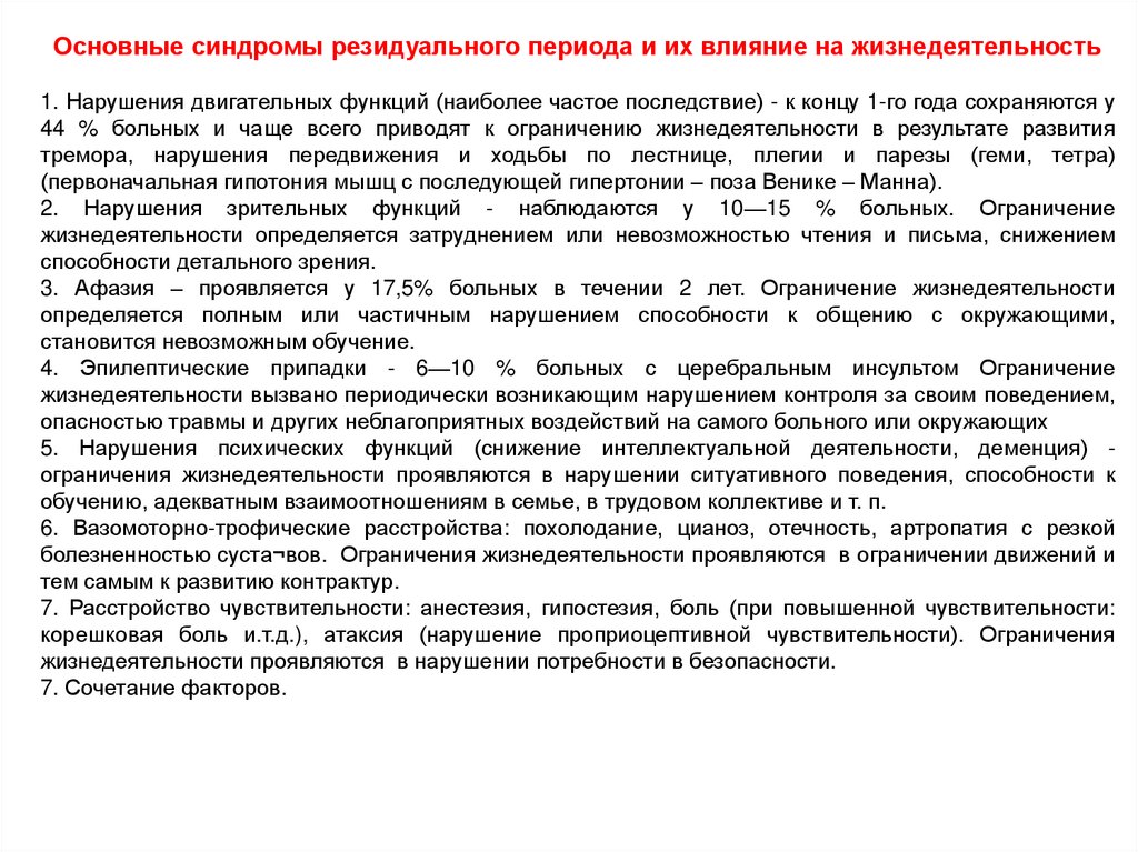 Наиболее частой причиной инвалидности являются последствия перенесенногоцеребрального инсульта.
