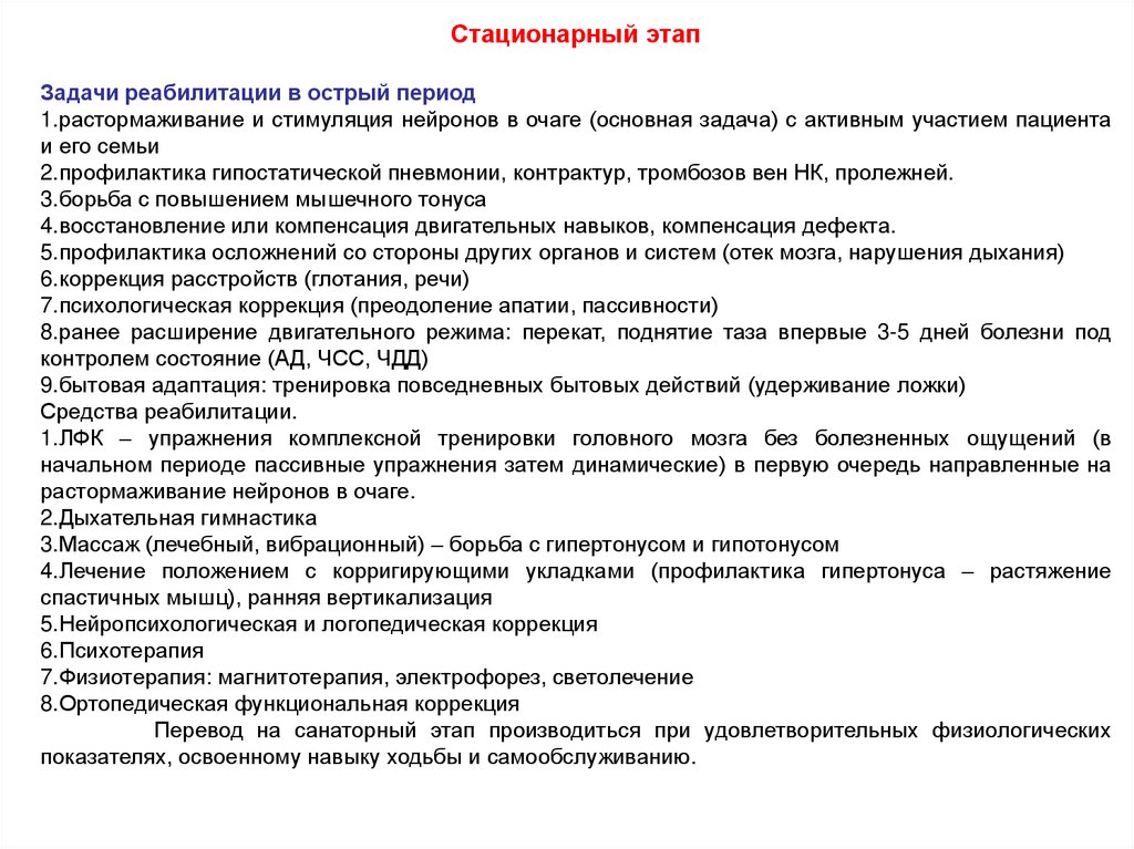 - правильное осуществление реабилитационных мероприятий в соответствии с индивидуальной