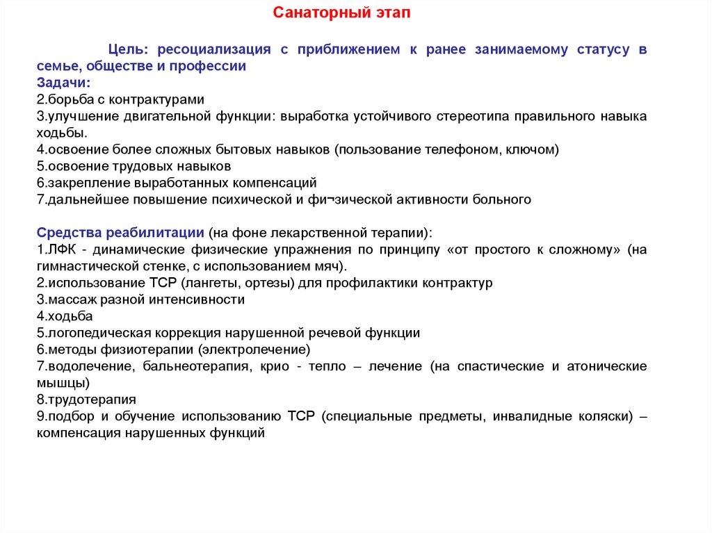 Санаторный этапЦель: ресоциализация с приближением к ранее занимаемому статусу в