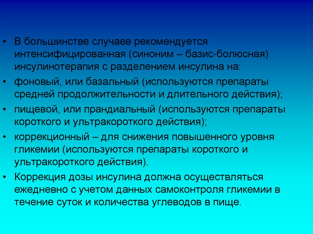 • В большинстве случаев рекомендуетсяинтенсифицированная (синоним – базис-болюсная)