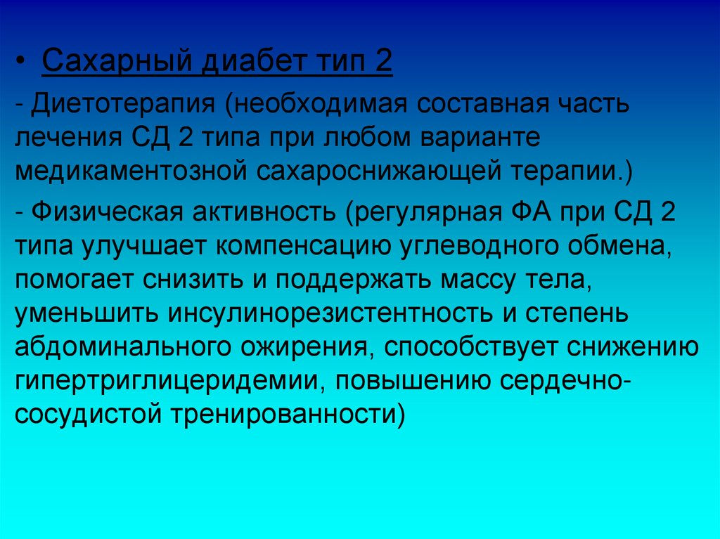 • Сахарный диабет тип 2- Диетотерапия (необходимая составная часть