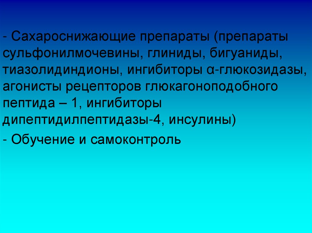 - Сахароснижающие препараты (препаратысульфонилмочевины, глиниды, бигуаниды,