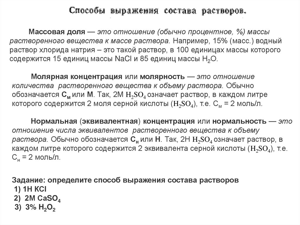 раствора. Обычно обозначается Сн или Н. Так, 2Н H2SO4 означает раствор, в