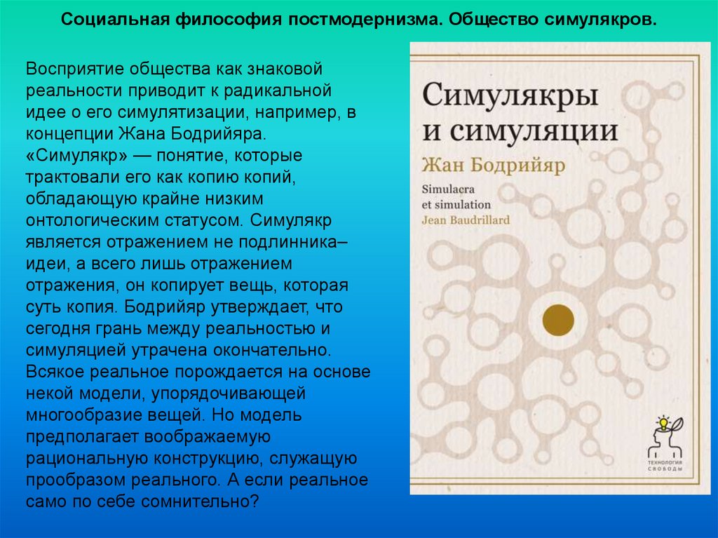 Социальная философия постмодернизма. Общество симулякров.Восприятие общества как знаковой