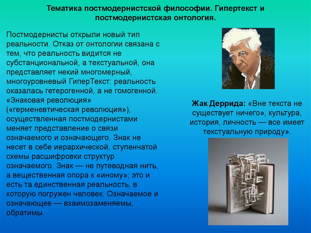 Тематика постмодернистской философии. Гипертекст ипостмодернистская онтология.
