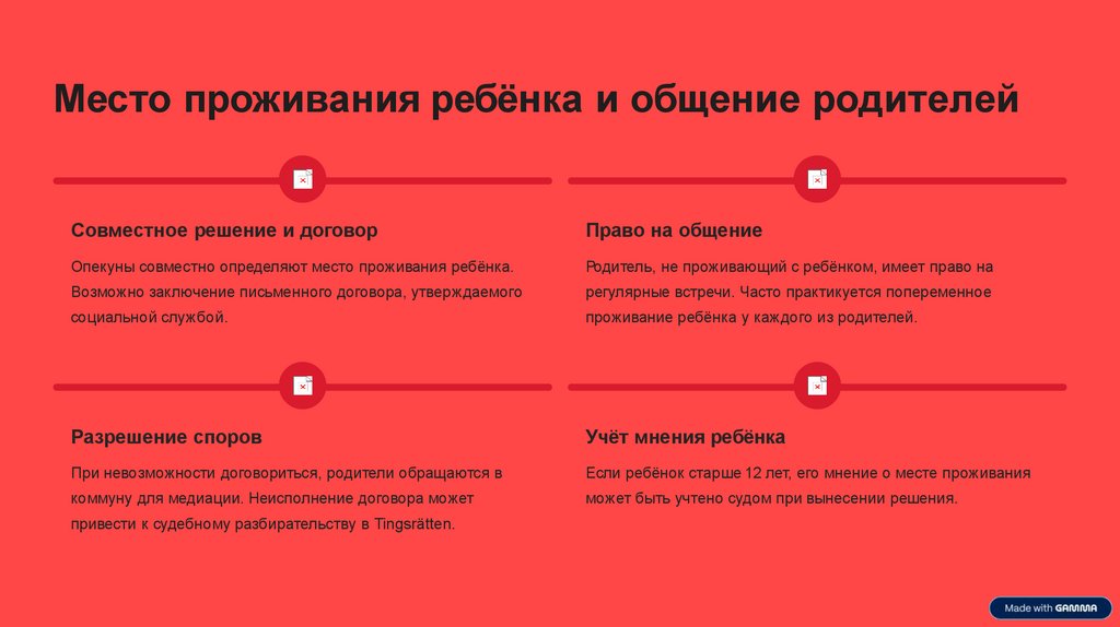 Место проживания ребёнка и общение родителейСовместное решение и договор