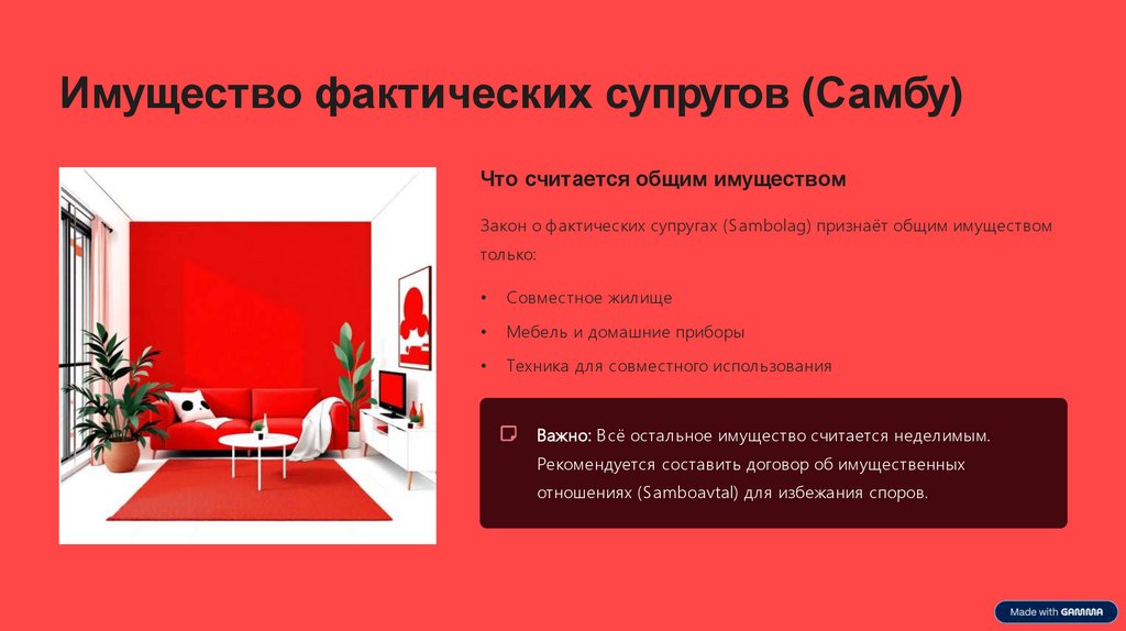 Имущество фактических супругов (Самбу)Что считается общим имуществом