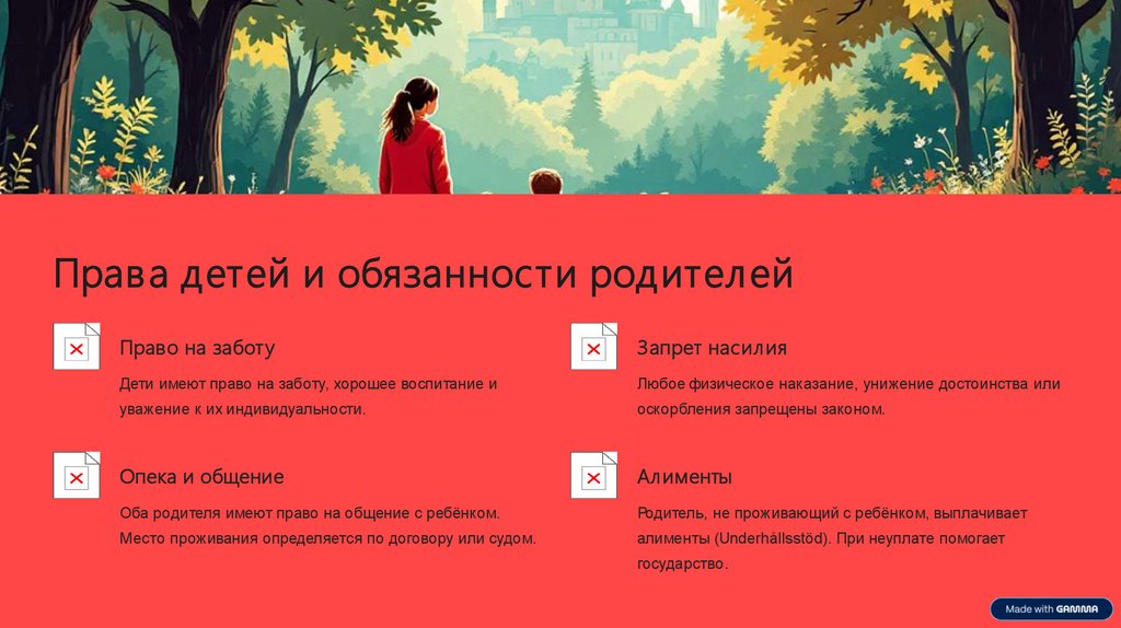 выплачивается. Пособие от государства (Barnbidrag) может быть разделено поровну.