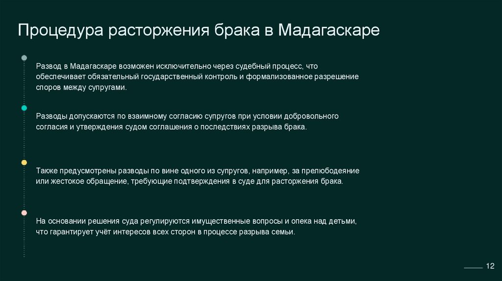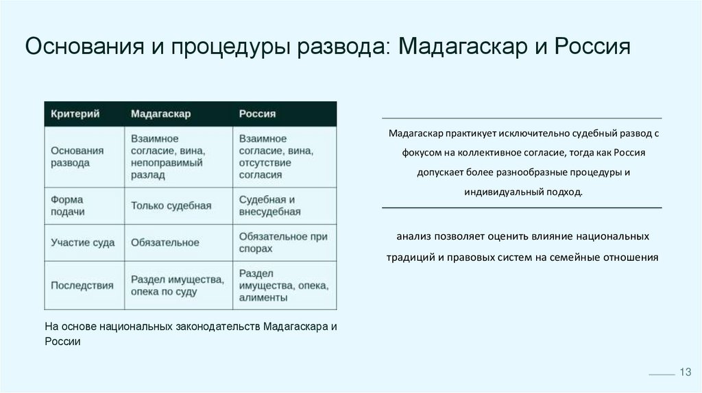Основания и процедуры развода: Мадагаскар и РоссияМадагаскар практикует исключительно судебный развод с