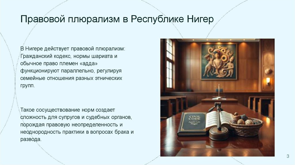 Правовой плюрализм в Республике НигерВ Нигере действует правовой плюрализм: