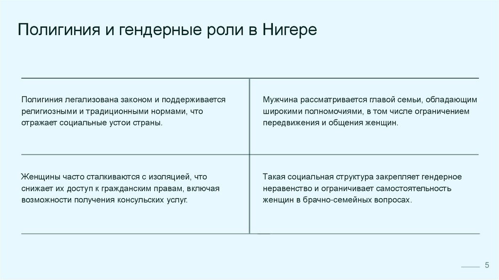 Полигиния и гендерные роли в НигереПолигиния легализована законом и поддерживается