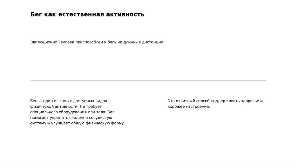 Бег как естественная активностьЭволюционно человек приспособлен к бегу на длинные дистанции.