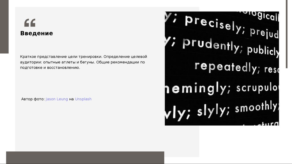 ВведениеКраткое представление цели тренировки. Определение целевой