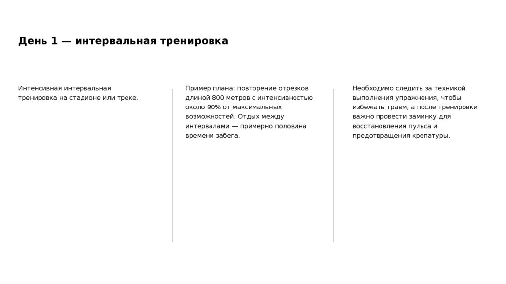 День 1 — интервальная тренировкаИнтенсивная интервальная