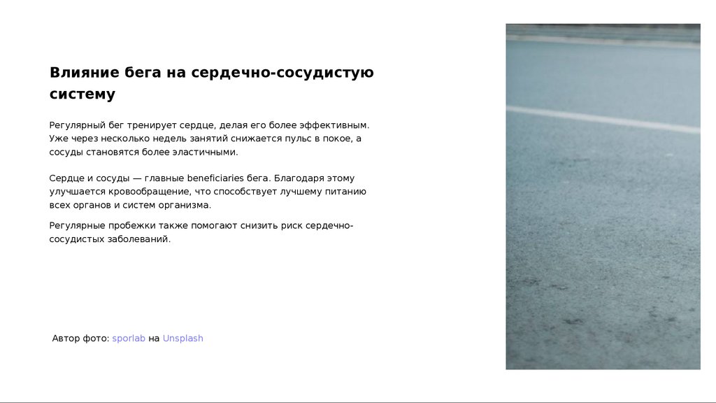 Регулярный бег тренирует сердце, делая его более эффективным.