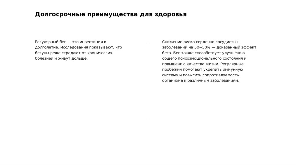 Долгосрочные преимущества для здоровьяРегулярный бег — это инвестиция в