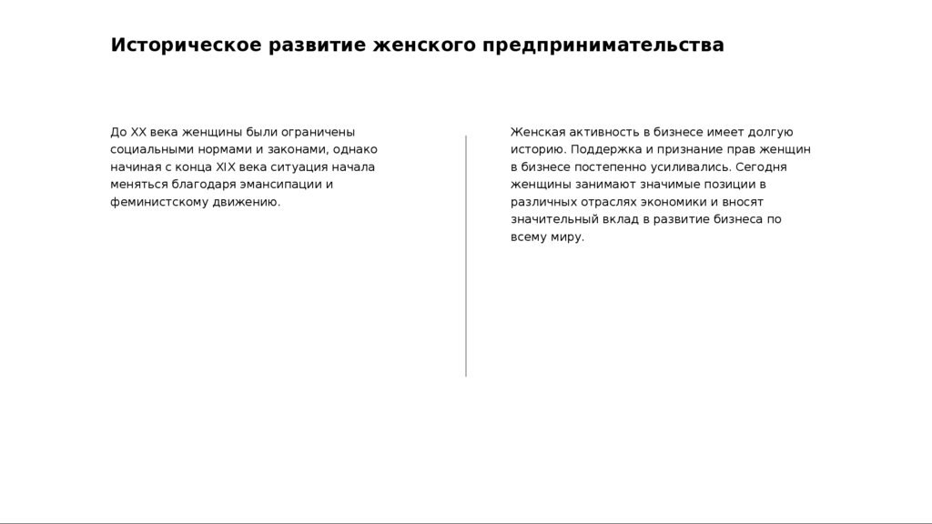 историческое развитие и современные тенденции. Мы также обсудили факторы успеха женского бизнеса и дали