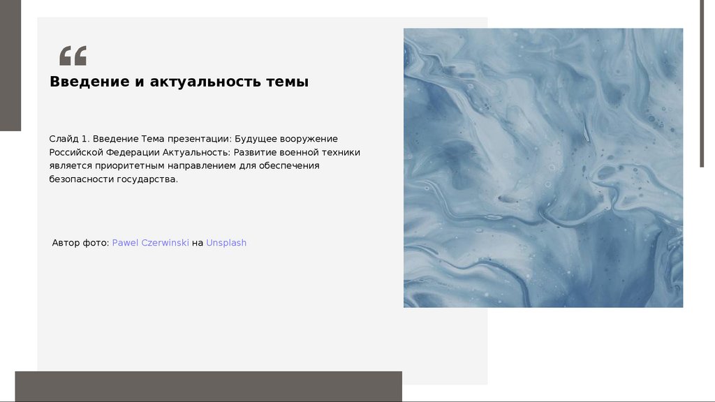 Введение и актуальность темыСлайд 1. Введение Тема презентации: Будущее вооружение