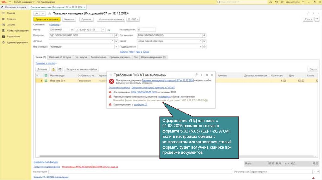 1C:ERP Управление предприятиемПоддержка ЕД-7-26/970 в части пивной продукции