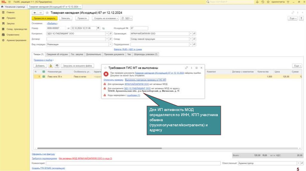 В ГИС МТ проверяется наличие и активность МОД при обработке УПД