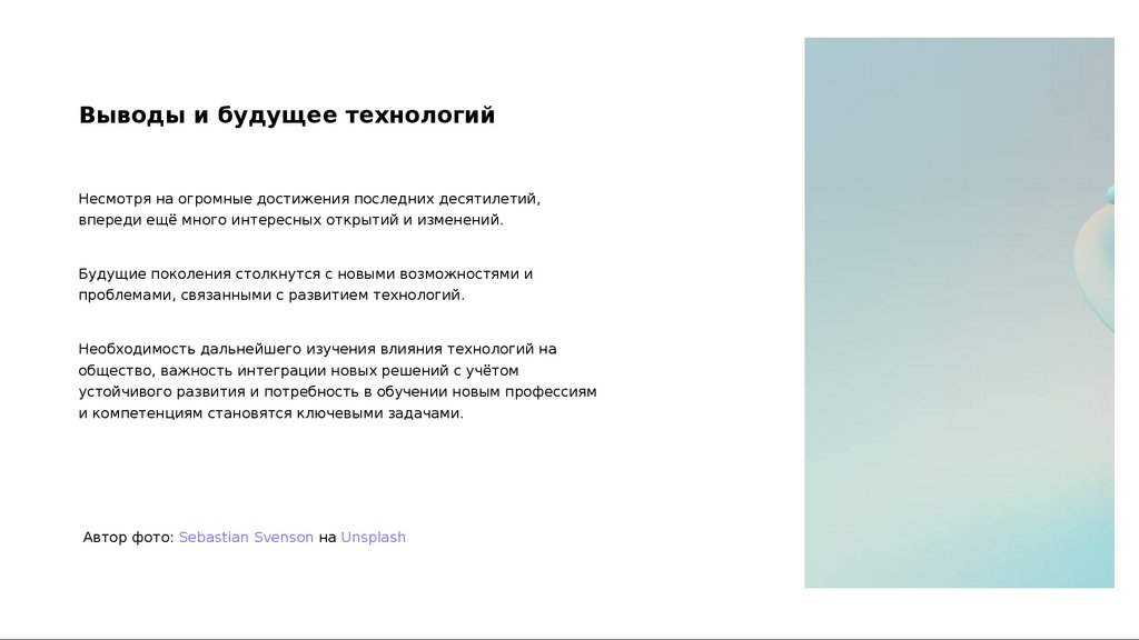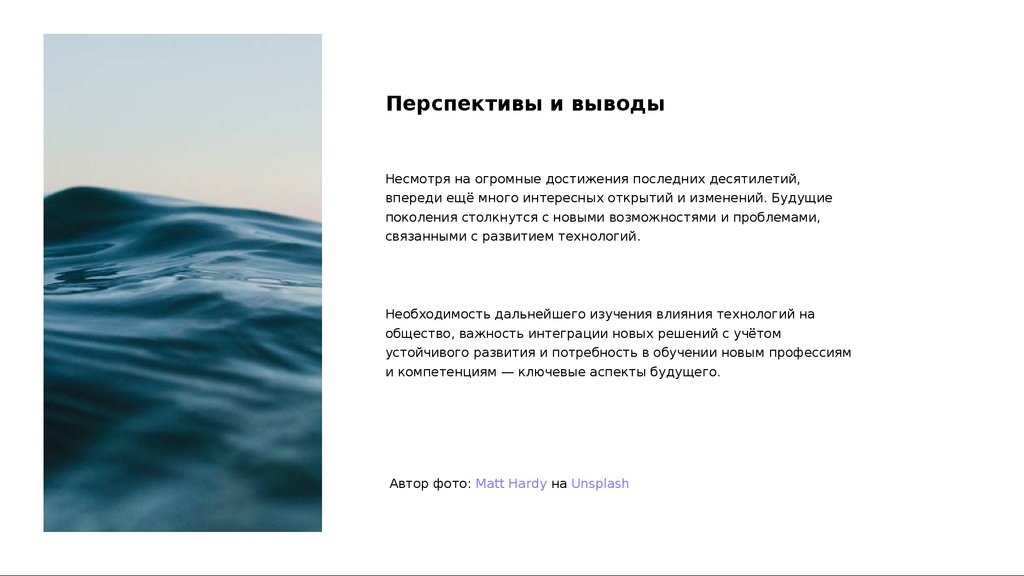 Выводы и будущее технологийНесмотря на огромные достижения последних десятилетий,