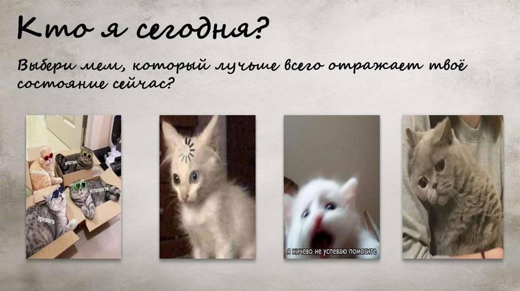 Кто я сегодня?Выбери мем, который лучьше всего отражает твоё