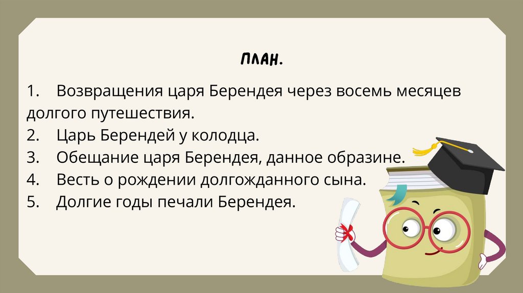 1. Возвращения царя Берендея через восемь месяцевдолгого путешествия.