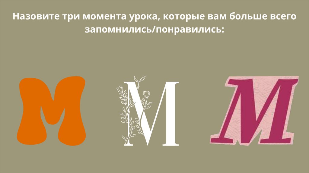 Назовите три момента урока, которые вам больше всегозапомнились/понравились: