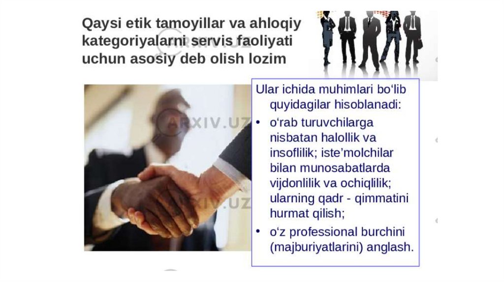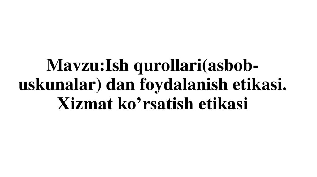 Mavzu:Ish qurollari(asbob-uskunalar) dan foydalanish etikasi. Xizmat ko’rsatish etikasi