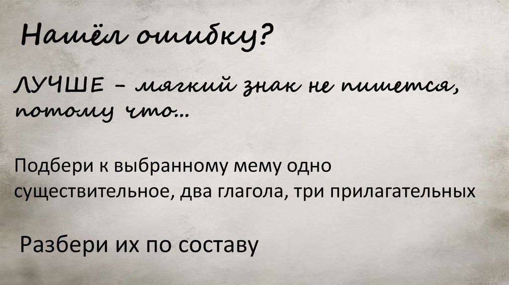 Нашёл ошибку?ЛУЧШЕ - мягкий знак не пишется,